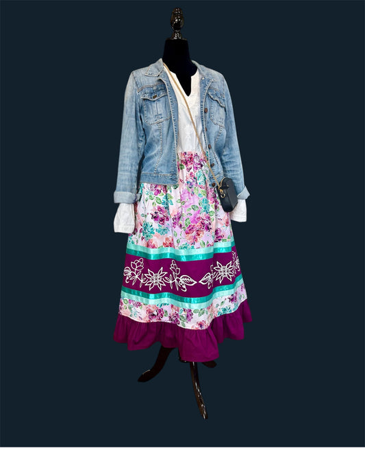 Fits up to 2x—Haudenosaunee Inspired Ruffle Ribbon Skirt—30” Long—