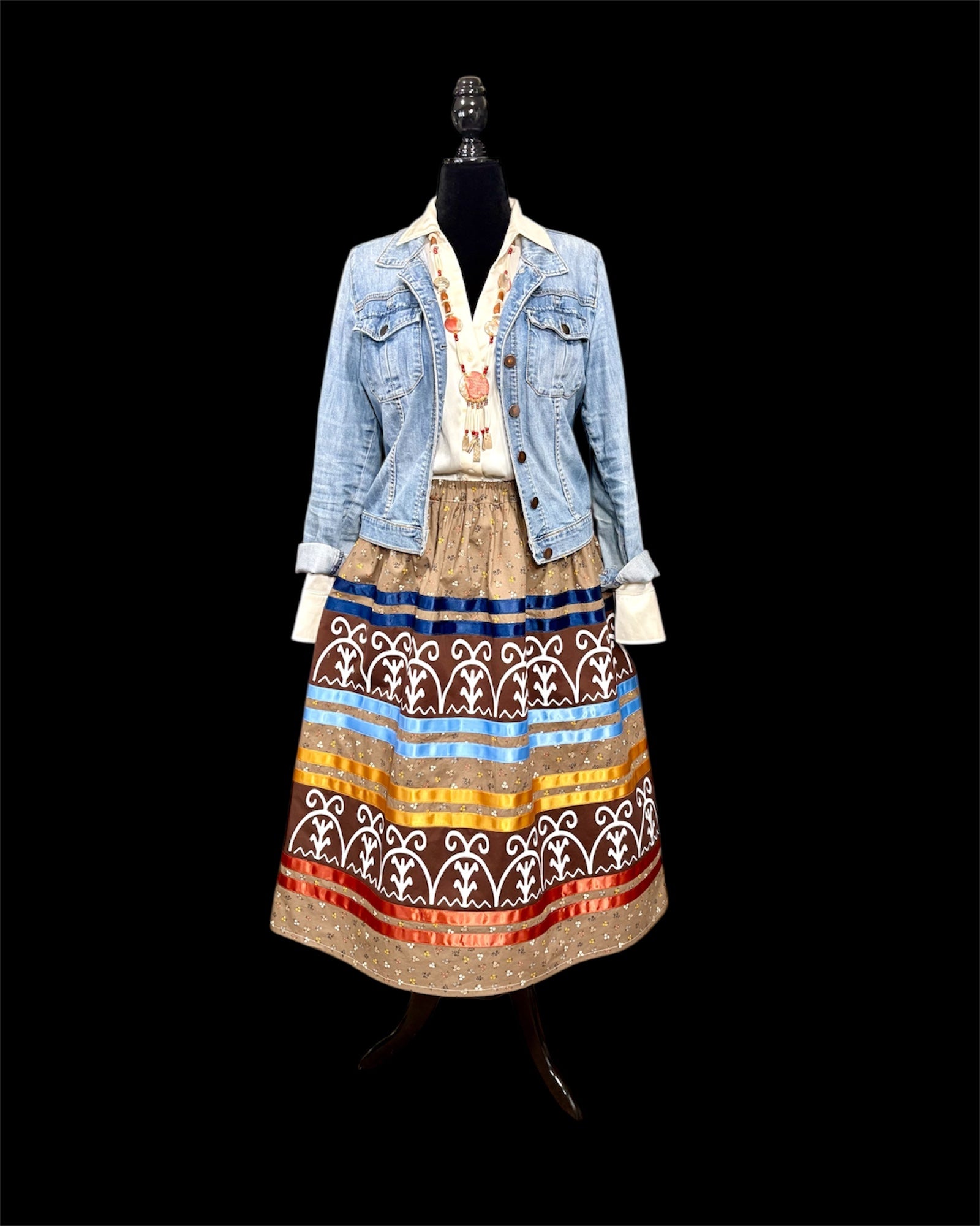 Small-1x Haudenosaunee Inspired Ribbon Skirt—✨Bonus: complimentary matching top (fits up to XL)